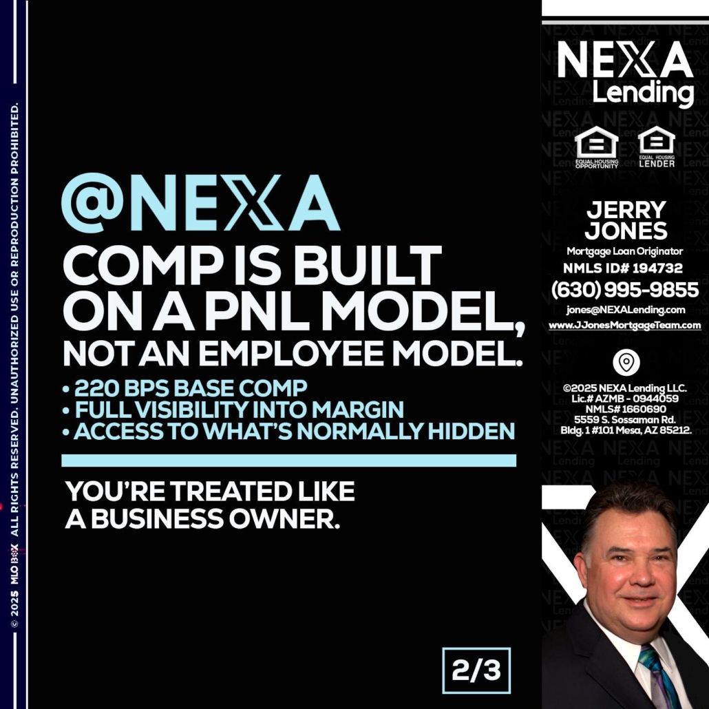 Hi, my name is Jerry Jones. I’m a Loan Officer with NEXA Lending LLC., offering personalized mortgage solutions, fast customized quotes, great rates and service with integrity.