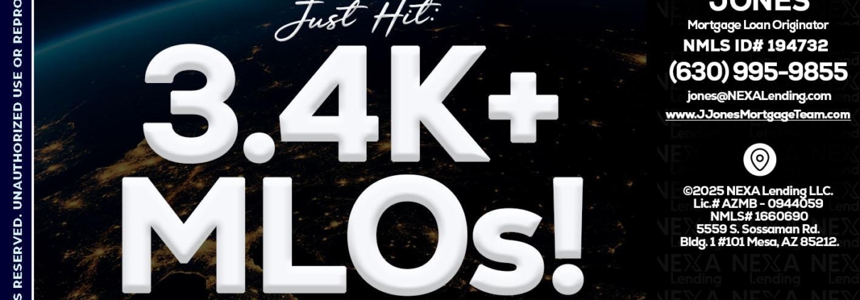 3.4K MLOs - Jerry Jones -Mortgage Loan OriginatorHi, my name is Jerry Jones. I’m a Loan Officer with NEXA Mortgage LLC, offering personalized mortgage solutions, fast customized quotes, great rates and service with integrity.