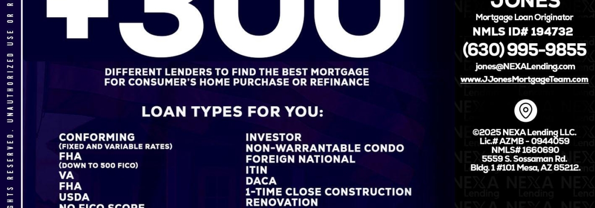 300+ LENDERS - Jerry Jones -Mortgage Loan OriginatorHi, my name is Jerry Jones. I’m a Loan Officer with NEXA Lending LLC., offering personalized mortgage solutions, fast customized quotes, great rates and service with integrity.