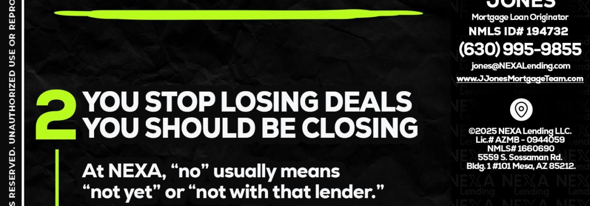 Hi, my name is Jerry Jones. I’m a Loan Officer with NEXA Lending LLC., offering personalized mortgage solutions, fast customized quotes, great rates and service with integrity.