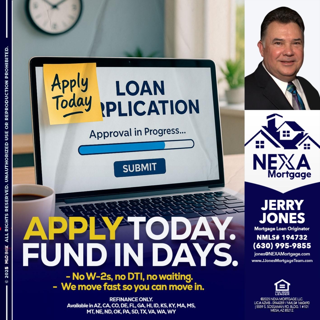 Hi, my name is Jerry Jones. I’m a Loan Officer with NEXA Mortgage LLC, offering personalized mortgage solutions, fast customized quotes, great rates and service with integrity.