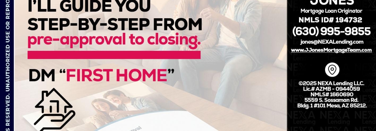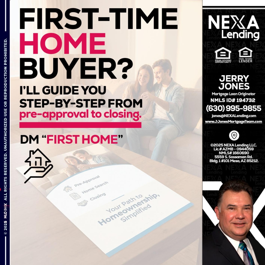 first time home buyer - Jerry Jones -Mortgage Loan OriginatorHi, my name is Jerry Jones. I’m a Loan Officer with NEXA Lending LLC., offering personalized mortgage solutions, fast customized quotes, great rates and service with integrity.