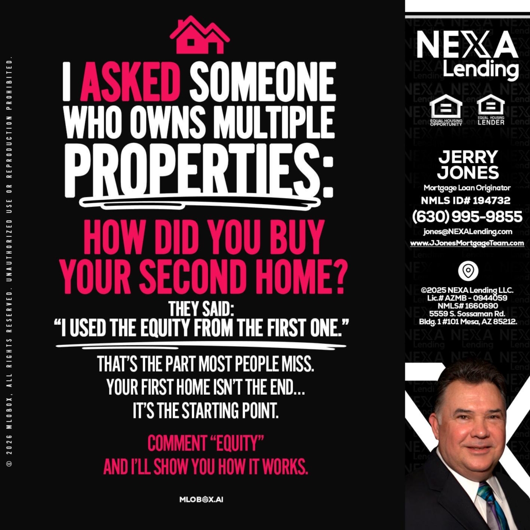 Hi, my name is Jerry Jones. I’m a Loan Officer with NEXA Lending LLC., offering personalized mortgage solutions, fast customized quotes, great rates and service with integrity.