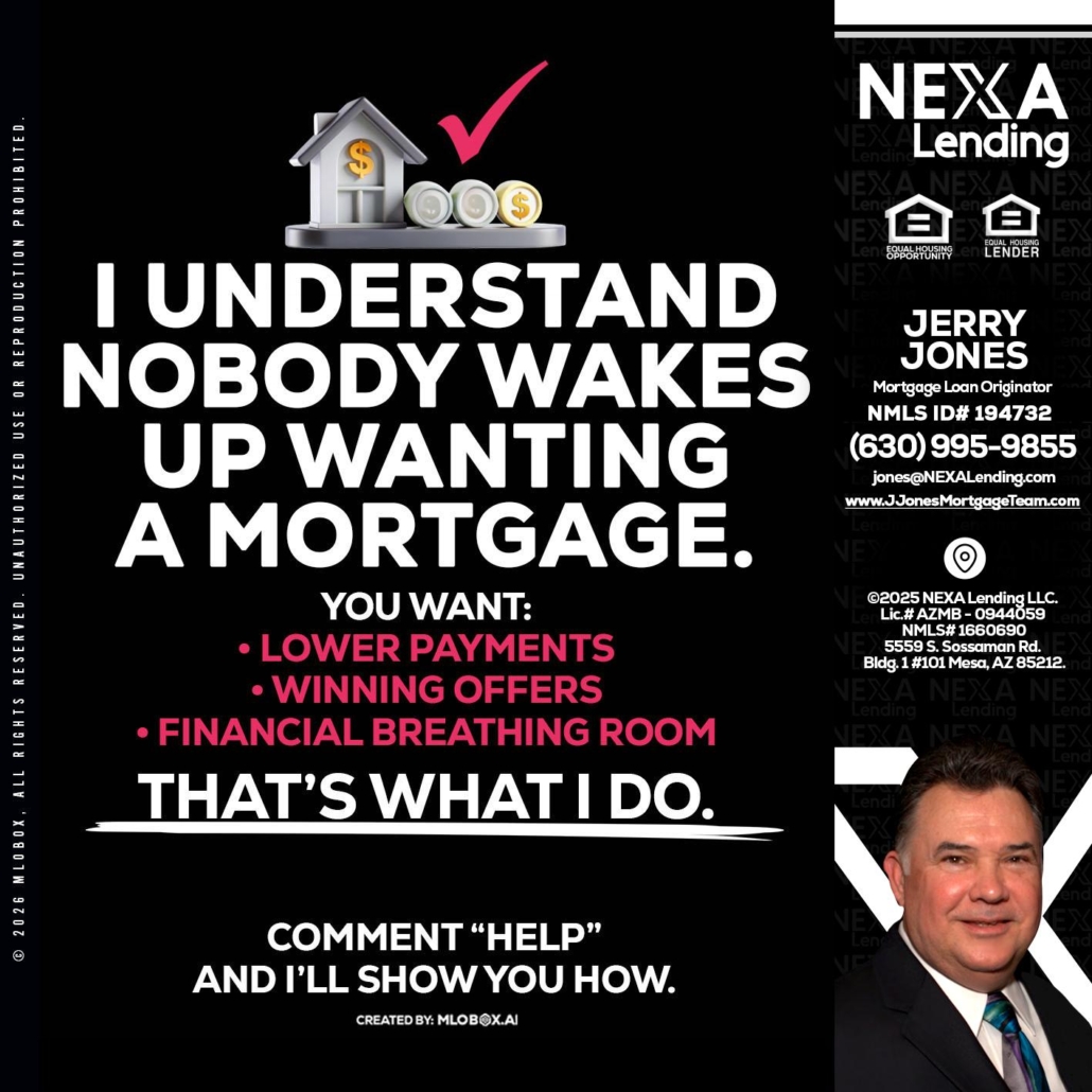 Hi, my name is Jerry Jones. I’m a Loan Officer with NEXA Lending LLC., offering personalized mortgage solutions, fast customized quotes, great rates and service with integrity.