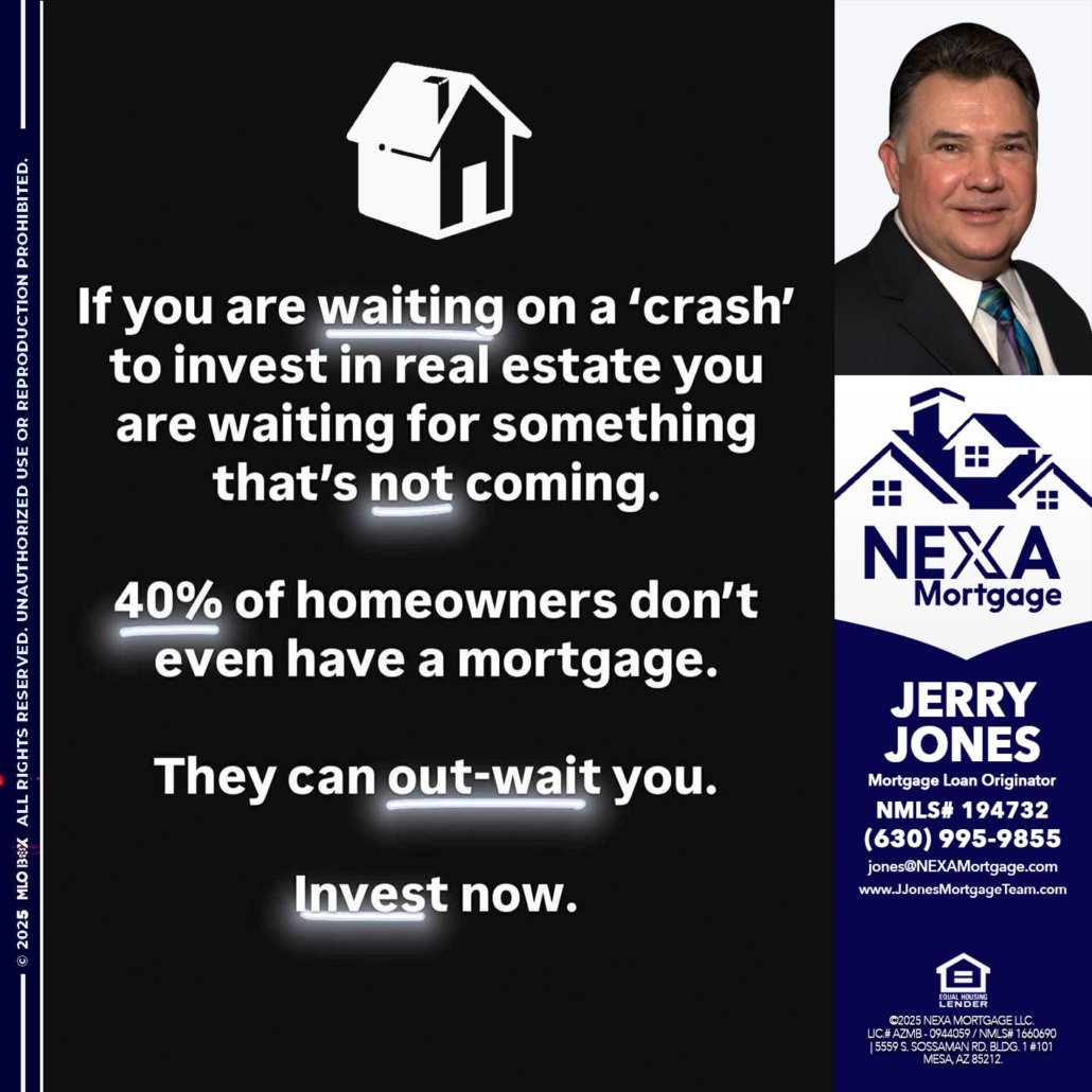 IF YOU ARE WAITING - Jerry Jones -Mortgage Loan OriginatorHi, my name is Jerry Jones. I’m a Loan Officer with NEXA Mortgage LLC, offering personalized mortgage solutions, fast customized quotes, great rates and service with integrity.
