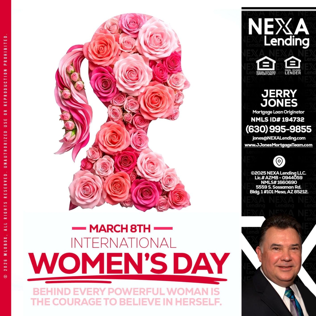 MARCH 8TH - Jerry Jones -Mortgage Loan OriginatorHi, my name is Jerry Jones. I’m a Loan Officer with NEXA Lending LLC., offering personalized mortgage solutions, fast customized quotes, great rates and service with integrity.