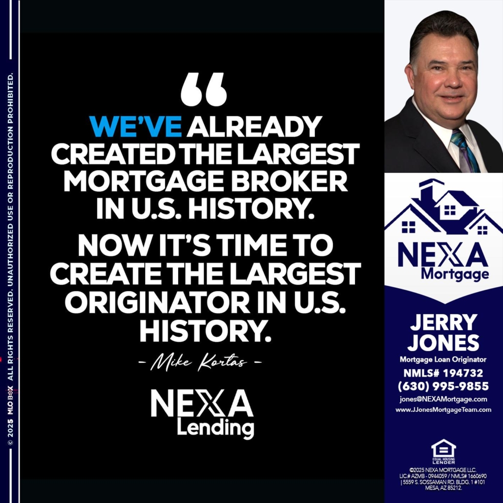 MIKE KORTAS - Jerry Jones -Mortgage Loan OriginatorHi, my name is Jerry Jones. I’m a Loan Officer with NEXA Mortgage LLC, offering personalized mortgage solutions, fast customized quotes, great rates and service with integrity.
