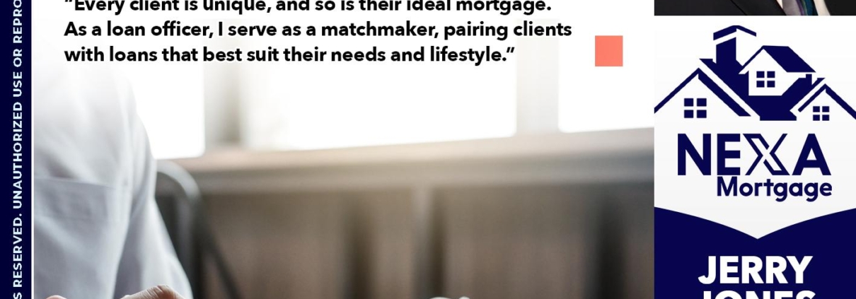 Hi, my name is Jerry Jones. I’m a Loan Officer with NEXA Mortgage LLC, offering personalized mortgage solutions, fast customized quotes, great rates and service with integrity.