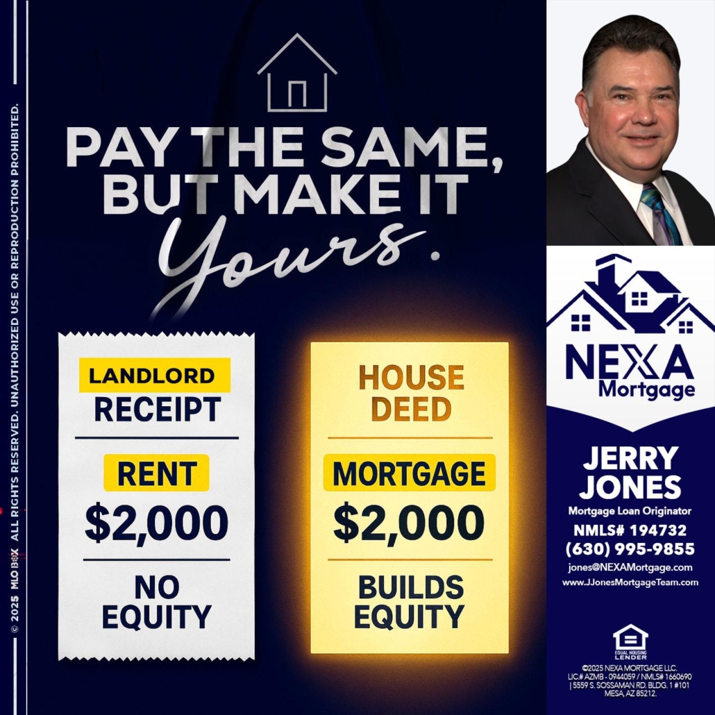 Hi, my name is Jerry Jones. I’m a Loan Officer with NEXA Mortgage LLC, offering personalized mortgage solutions, fast customized quotes, great rates and service with integrity.