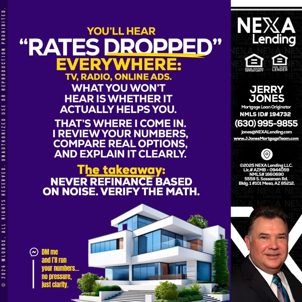Hi, my name is Jerry Jones. I’m a Loan Officer with NEXA Lending LLC., offering personalized mortgage solutions, fast customized quotes, great rates and service with integrity.
