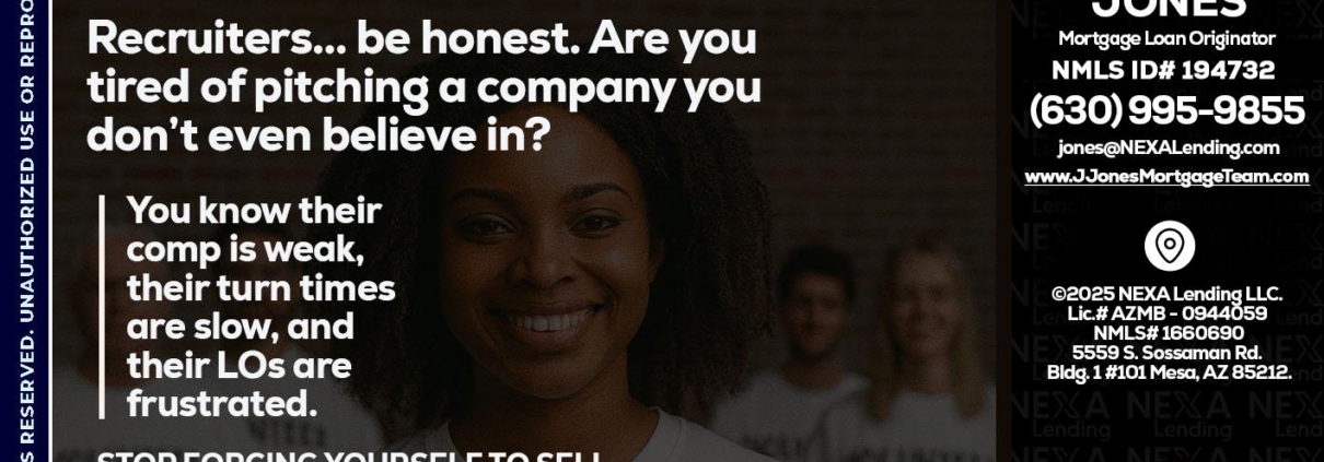 Hi, my name is Jerry Jones. I’m a Loan Officer with NEXA Mortgage LLC, offering personalized mortgage solutions, fast customized quotes, great rates and service with integrity.