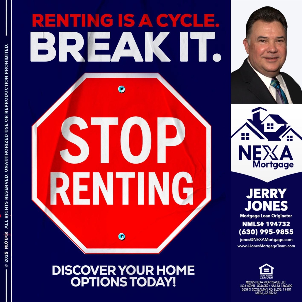 STOP RENTING - Jerry Jones -Mortgage Loan OriginatorHi, my name is Jerry Jones. I’m a Loan Officer with NEXA Mortgage LLC, offering personalized mortgage solutions, fast customized quotes, great rates and service with integrity.