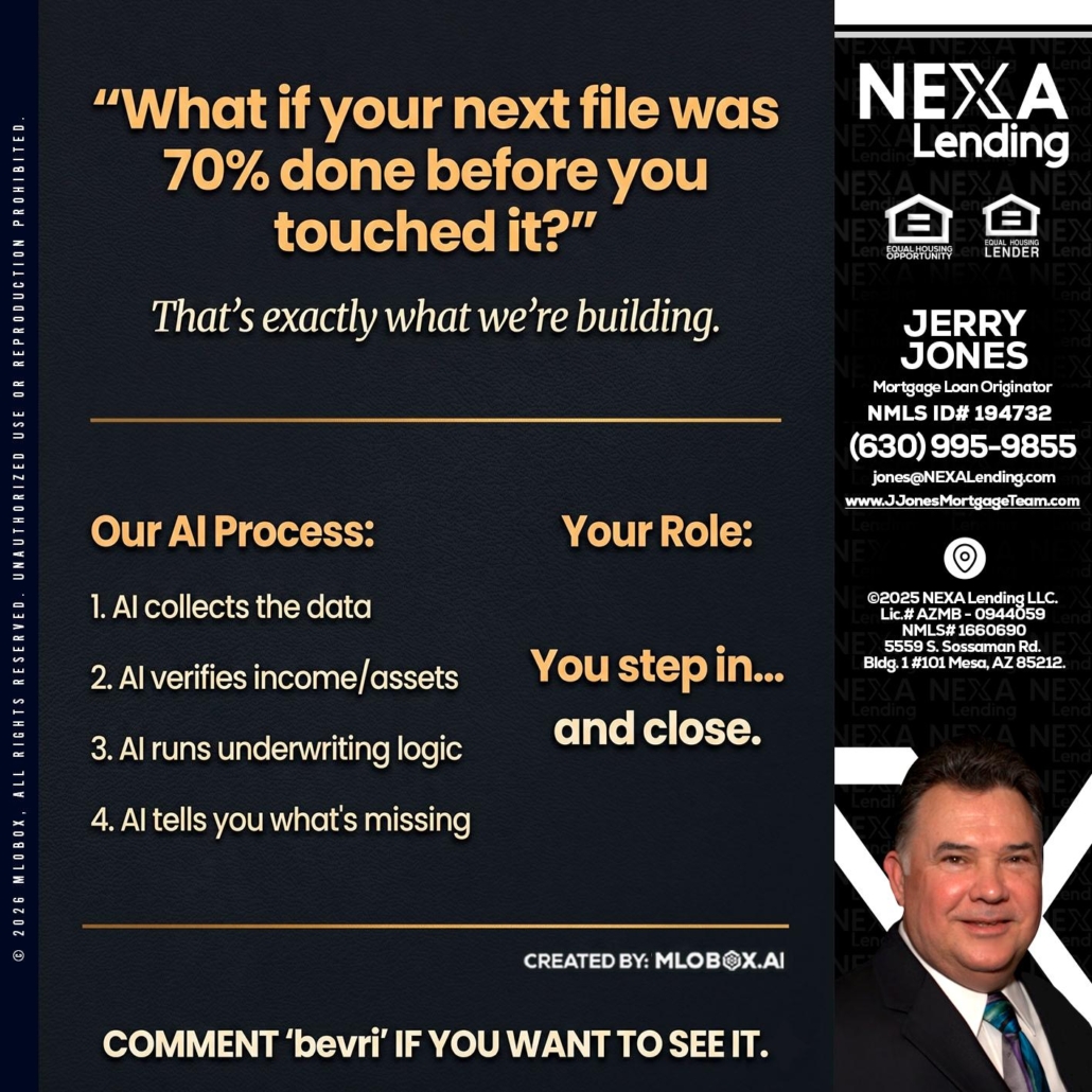 WHAT IF YOUR - Jerry Jones -Mortgage Loan OriginatorHi, my name is Jerry Jones. I’m a Loan Officer with NEXA Lending LLC., offering personalized mortgage solutions, fast customized quotes, great rates and service with integrity.